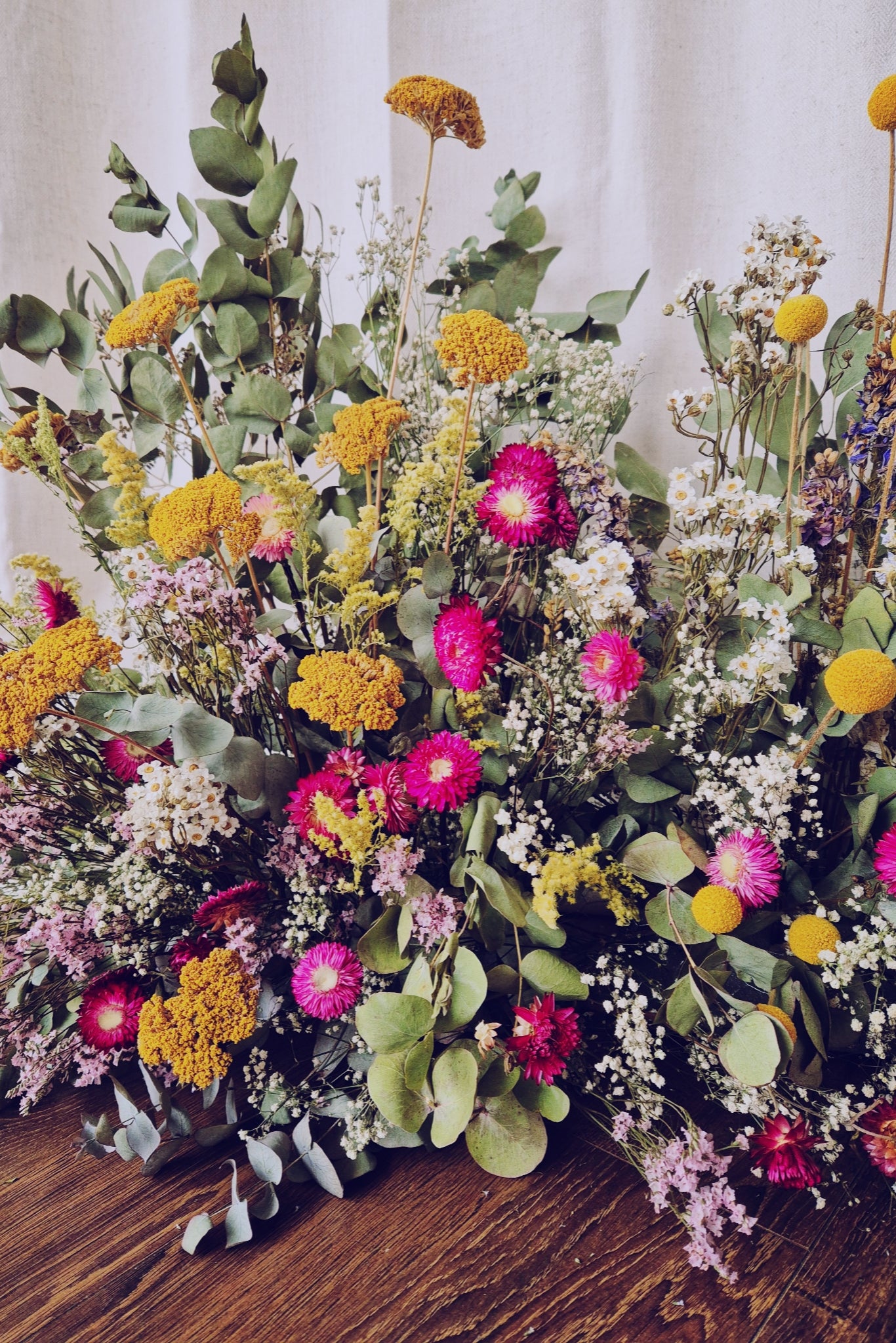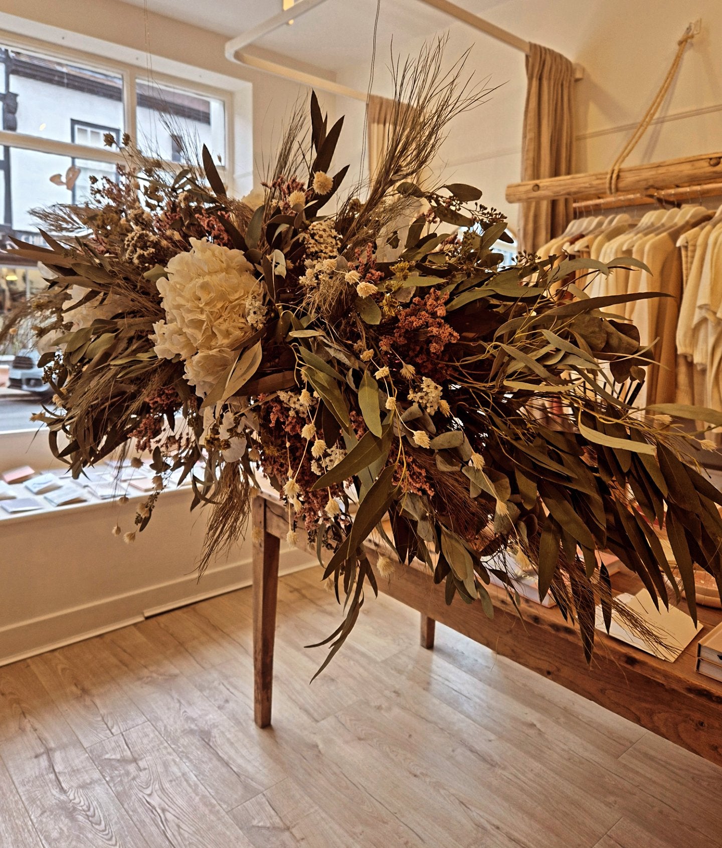 My everlasting dried flower installations bring nature and colour into your spaces. From celebrations of flowers at the National Trust to shop decorations, for photography studio set ups or wedding venue forever pieces. If you have an idea you'd love to bring to life, get in touch and we can chat all things flowers.