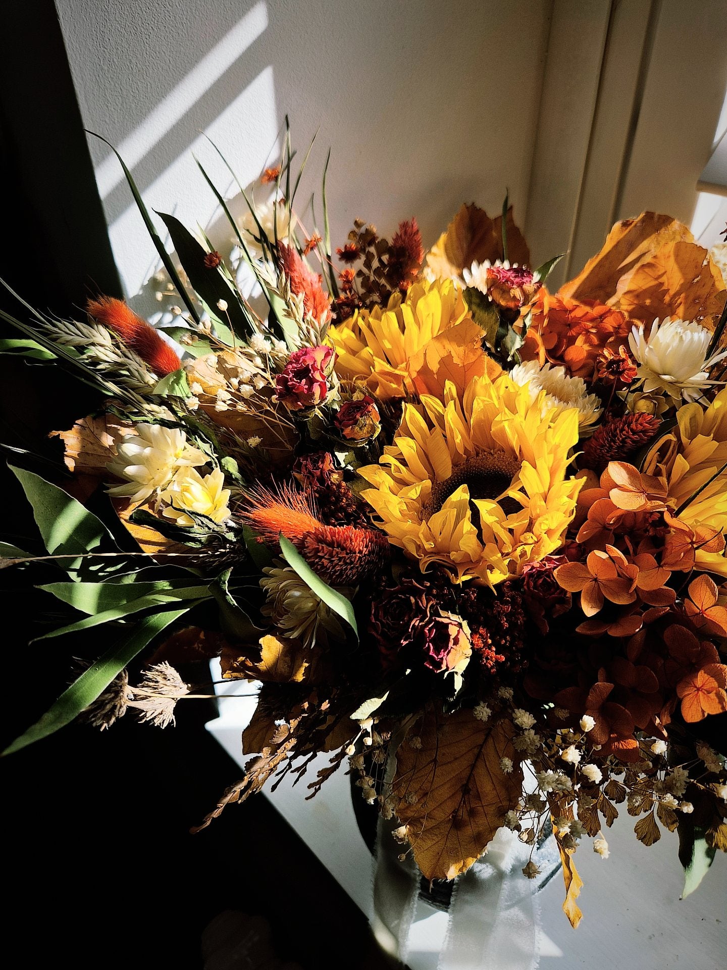 The best thing about choosing a dried flower bouquet is that I get to keep it and admire it daily.'